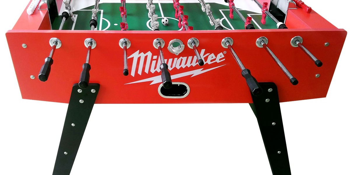 Nå er vi så heldige at vi kan gi bort dette kule fotballbordet til en av dere som kjøper Milwaukee elektroverktøy hos oss!