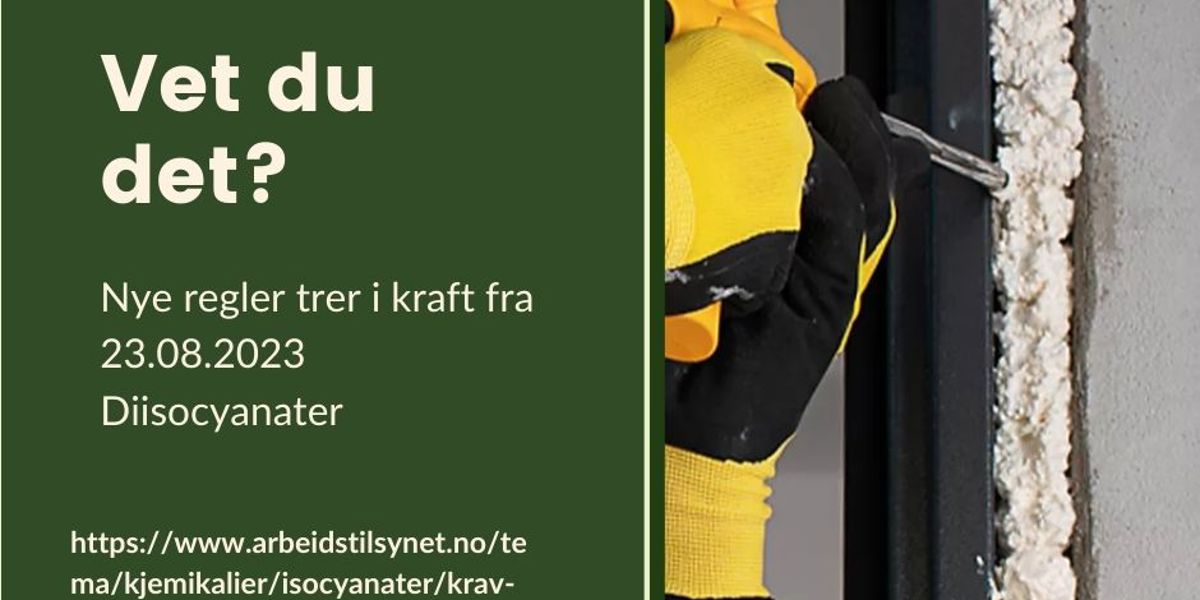 Fra 24. august 2023 må alle (profesjonelle eller industrielle virksomheter) som bruker diisocyanater og diisocyanatholdige blandinger kunne dokumentere fullført opplæring i sikker bruk. Kravet til opplæring gjelder både arbeidsgivere, arbeidstakere og selvstendig næringsdrivende.